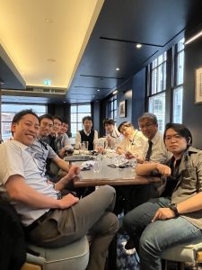 2024/07/15-20: Prof. Tateyama gave an oral presentation at Solid State Ionics 2024 (15-19 July 2024, QE II Centre, London, UK), a leading international conference on solid state ionics. He also gave an invited lecture at the ‘UK-Japan Next-Generation Batteries Seminar’ held at King’s College London on 20 July. (Dinner on the first day at Pizza Express (with Prof. Amezawa (Tohoku U.), Prof. Hitosugi(U. Tokyo), Prof. Moriya (Shizuoka U.), Prof. Yamazaki (Kyushu U.), Prof. Kobayashi (RIKEN), Prof. Kawai (Waseda U.); Dinner on the second day at a pub (with Prof. Ohno (Tohoku U.), Prof. Taminato (Mie U.), Prof. Hikima(Tohoyashi U. of Technology), Prof. Kasamatsu (Yamagata U.), Prof. Yamazaki (Kyushu U.), Prof. Nasu (Hokkaido U.), Prof. Okubo (Waseda U.))