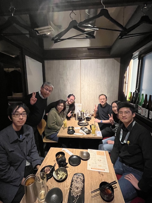 2024/12/20: 忘年会開催! Welcome, Ichaさん (An Niza El Aisnada, PD)と 暖さん (伊藤暖, 早稲田D2)), 米国からお帰りZizhenさん(Zizhen Zhou, 特任助教), 豪州へいってらっしゃい遼馬さん(佐々木遼馬, 助教)!
